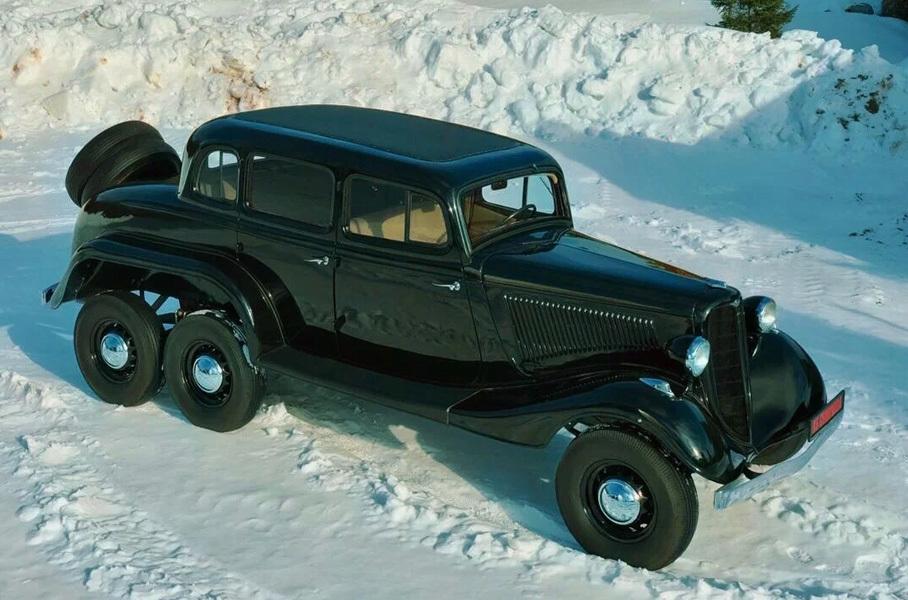 При этом шестиколесный седан с ведущими задними осями в серию не пошел – к 1939 году был готов более приспособленный к жизни полноприводный вариант «эмки» ГАЗ-61 с рядной «шестеркой» под капотом и четырьмя колесами. ГАЗ-61 сейчас тоже большая редкость – большинство выпущенных перед войной машин было утрачено в ходе боевых действий.