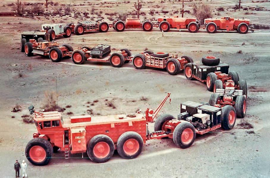 В конце сороковых годов XX века мир, казалось, стоял на грани ядерной войны: конфронтация между двумя сверхдержавами нарастала, и гонка вооружений стала жизненной необходимостью. Предполагая, что военные силы СССР могут несколькими ударами подорвать как автомобильное, так и железнодорожное сообщение в стране, Министерство Обороны США сделало заказ техасскому производителю LeTourneau на производство автопоезда, способного перевозить тяжелые грузы по местности, пострадавшей от ядерной войны. Однозначный выбор в пользу LeTourneau (без тендера) был неслучаен — компания отлично зарекомендовала себя в 1953 году с тяжелым лесовозом VC-12 Tournatrain (на фото).