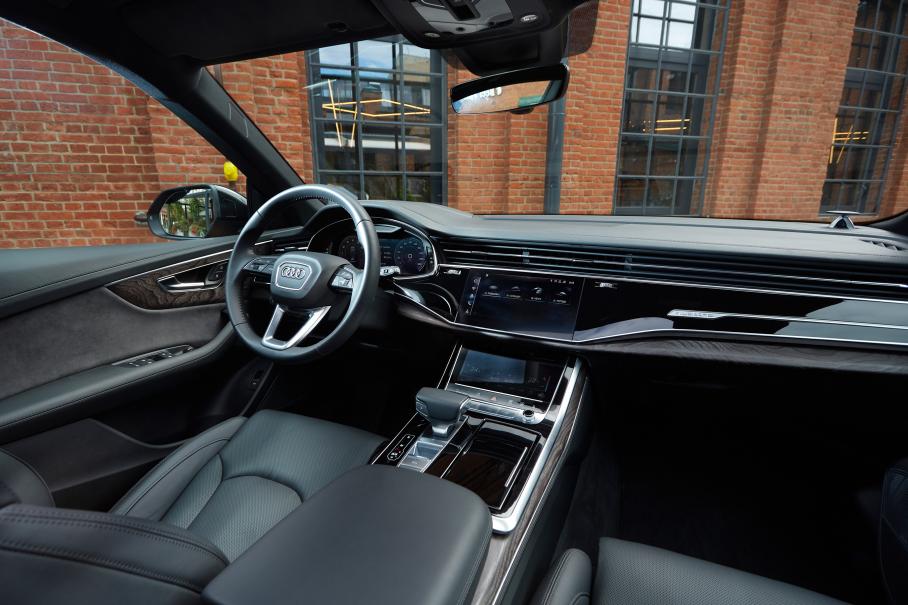 Не считая скрипящего под нагрузкой центрального подлокотника и неаккуратного стыка двух хромированных планок на центральной консоли, к интерьеру тестового Q8 с пробегом 15 тысяч километров по части исполнения вопросов нет. Дорого-богато. Обзорность хороша, кресла идеальны, кожа приятна по фактуре, вся фурнитура выполнена качественно, картинка у всех дисплеев шикарная. Смутили только несколько житейских моментов.