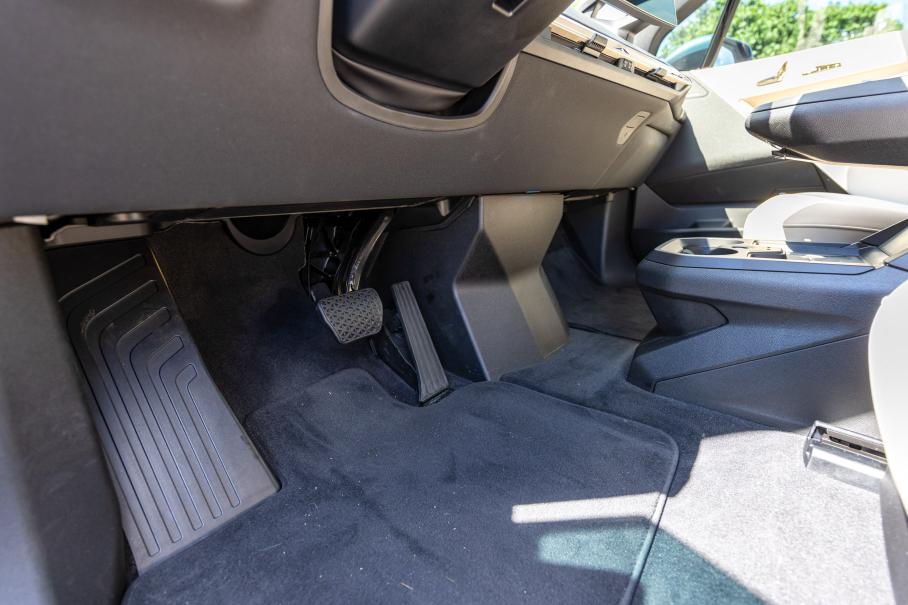 Однако капот всё-таки открывается. Для этого необходимо дернуть два веревочных хлястика с водительской и пассажирской стороны. После чего взору открывается подкапотное пространство, которое мало чем отличается от моторного отсека обычного автомобиля с ДВС. Возникает вопрос: «Холмс... Но, черт возьми, как?» Что такого лишнего есть в iX, чего нет в Тесле, что не позволило освободить место под капотом? Впрочем, очень много всего. Так что не станем упрекать немецких инженеров в том, что передний мотор они разместили под капотом, как и делают уже лет сто.