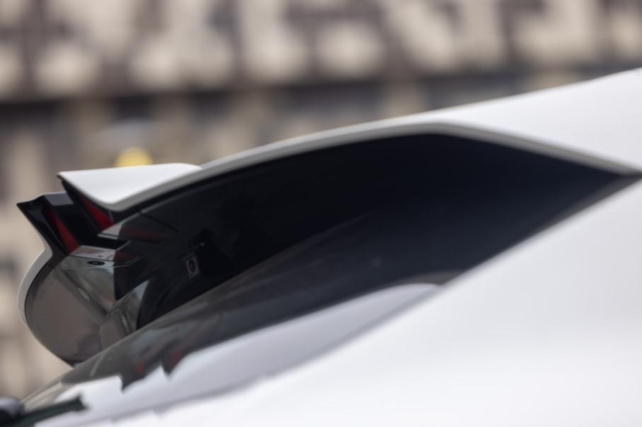 Самую дорогую модификацию можно опознать только хорошенько приглядевшись: по оранжевым суппортам тормозных механизмов, патрубкам выпускной системы иной формы и двум лючкам на задних крыльях — с горловиной топливного бака и зарядочными портами. Еще одно отличие, которое можно заметить только в темноте, — подсвечивающася красным эмблема марки на крышке багажника.