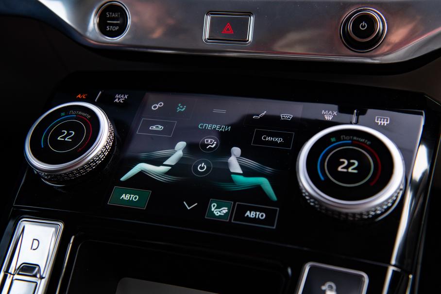 Прошлым летом мы уже познакомились с электрическим Ягуаром в Португалии, так что более-менее знали, чего от нее ожидать. Если коротко: 696 Нм крутящего момента, которые выдаются сразу при нажатии на газ, без задержек — это действительно захватывающе. Голова вжимается в подголовник даже при разгоне со скорости — например, со 100 км/ч. Главное, чтобы руль был в умелых руках. Ведь все свои 4,8 секунды до «сотни» электромобиль преодолевает бесшумно, не считая шуршания покрышек по асфальту. Спортивную машину с ДВС слышно издалека, здесь же стоит надеяться только на хорошее зрение окружающих. И на системы активной безопасности, в том числе и функцию предупреждения столкновений.