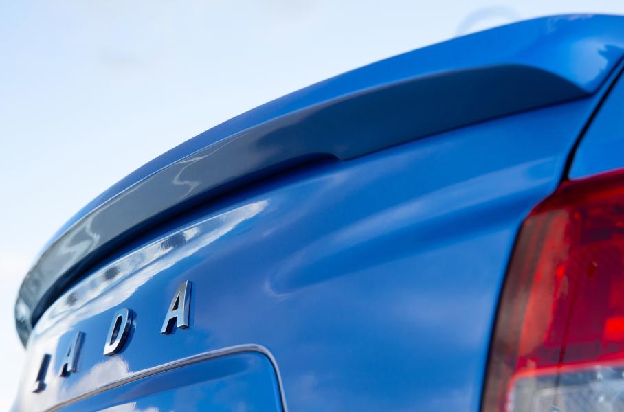 Снаружи — за бамперы с красными полосками а-ля Vesta Sport, накладки на пороги, спойлер на крышке багажника, 15-дюймовые легкосплавные колеса с простенькими шинами Pirelli Cinturato P1 размерности 185/55 R15 да хромированную накладку на выхлопную трубу, позаимствованную непосредственно у Весты Sport.