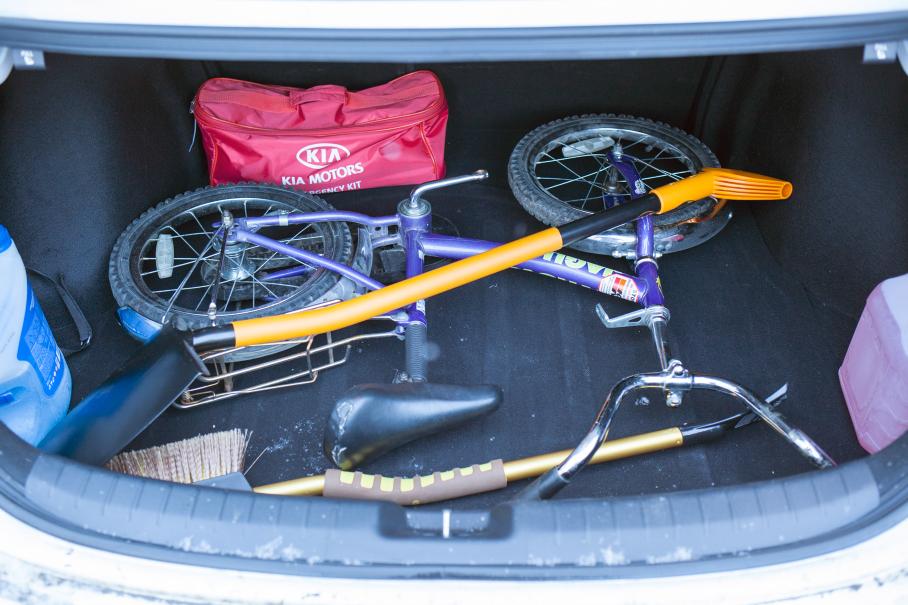 На практике это означает, что детский велосипед и вполне себе «взрослая» лопата помещаются в седане одновременно и не посягают на место в салоне, хотя спинки тоже можно сложить. В том числе удобными рычажками в самом багажнике. Колесная база Cerato на 5 сантиметров больше, чем у Сида — и хэтчбека, и универсала. Так что седан просторнее на заднем ряду.