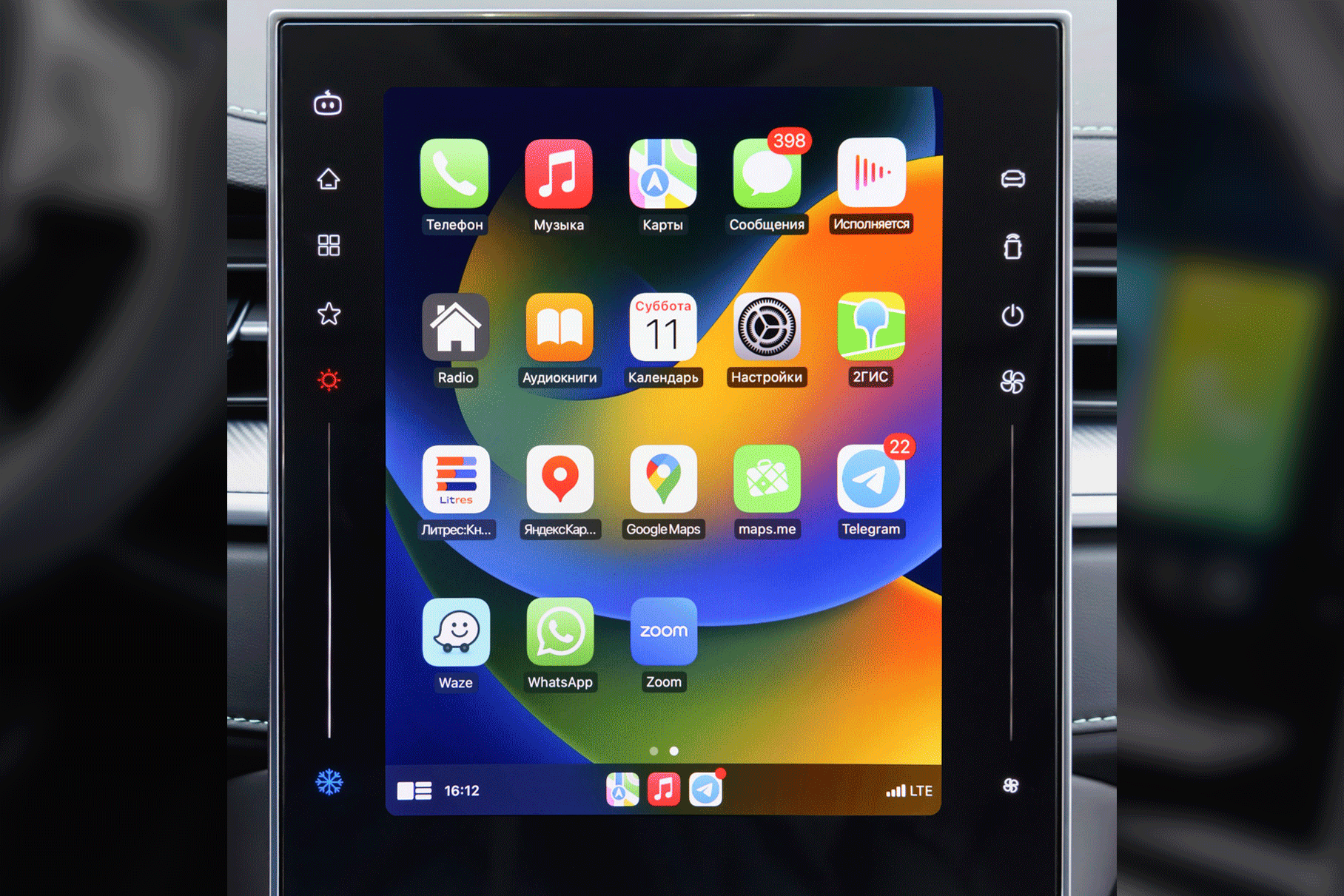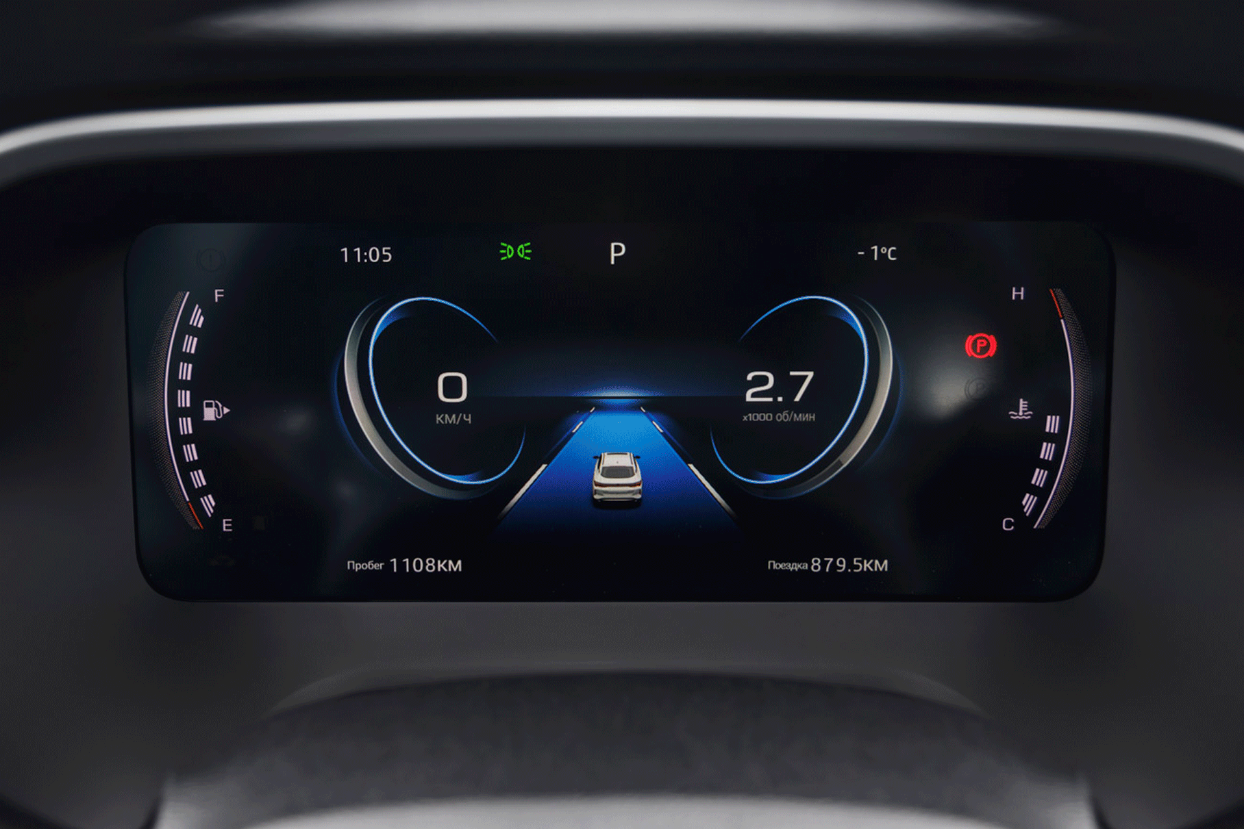 Размеры электронной приборной панели и мультимедийного комплекса по современным меркам достаточно скромные — 7 и 10,4 дюйма соответственно. Но у них есть свои несомненные и очень приятные плюсы: приборка не перегружена лишней информацией, вся необходимая индикация крупная и понятная, а мультимедийка имеет поддержку Apple CarPlay и Android Auto даже в базовой комплектации.