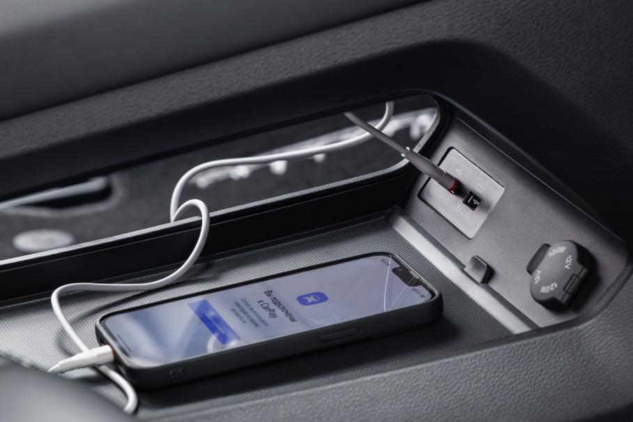 Различных удобных мелочей тут тоже хватает: на всю машину здесь предусмотрено аж четыре USB-порта (по два спереди и сзади), розетка на 12 В для передних пассажиров и отдельный разъём рядом с зеркалом заднего вида для подключения видеорегистратора.