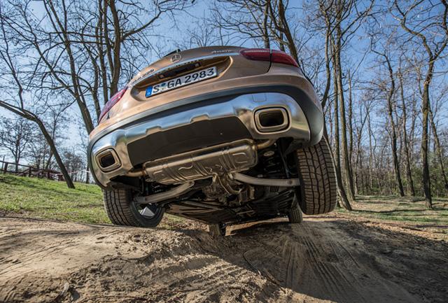 При этом угол въезда здесь уже на уровне далеко не паркетного Renault Kaptur, поэтому GLA не цепляет мордой на косогорах. Да и просто не занимает на дороге много места, оставляя больше возможностей для маневра.