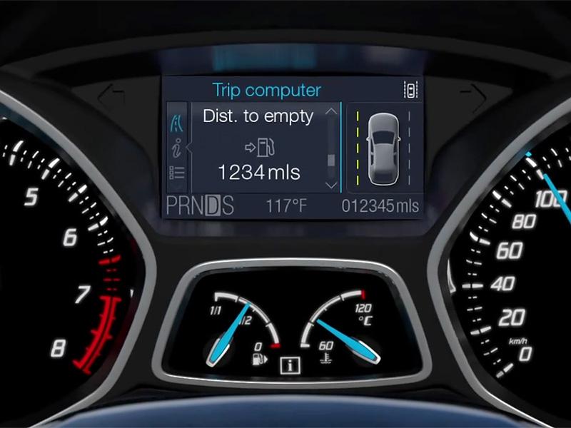 Как и на Ford Mondeo, цветной дисплей на приборке "Фокуса" наглядно показывает, какие двери открыты у автомобиля и включен ли ближний свет и габариты.