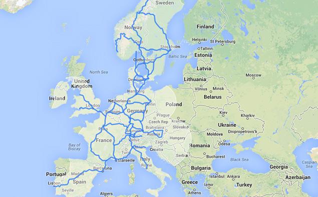 Ситуация с зарядочными станциями "Теслы" в Европе на осень 2013 года