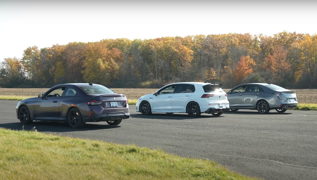Видео: Volkswagen Golf R, Cadillac CT4-V и BMW M240i свели в гонке по прямой