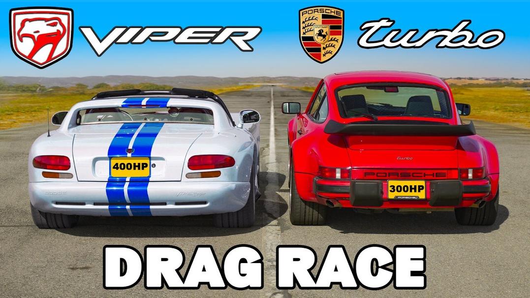 Гонка раритетов: классическому Porsche 911 Turbo устроили дуэль с Dodge Viper первого поколения