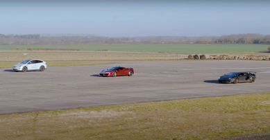 Видео: итальянские суперкары сразились в гонке с американским электрокроссовером