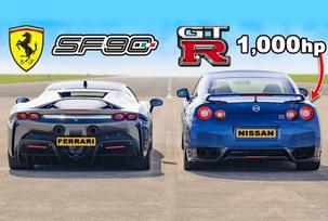 Видео: быстрейшая Ferrari сразилась в дрэге с 1000-сильным Nissan GT-R