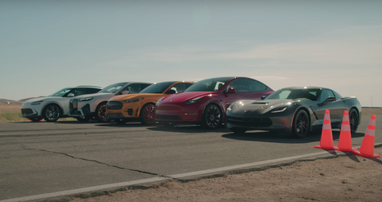 Четыре электрокроссовера и спорткар сравнили в гонке по прямой