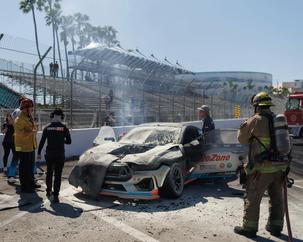 Видео: новейший дрифтовый Ford Mustang сгорел во время заезда