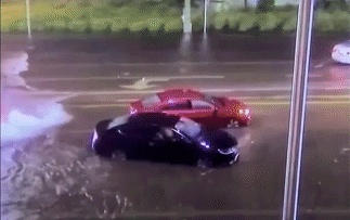 Видео: Lamborghini Huracan устроил заезд по затопленным улицам во время шторма