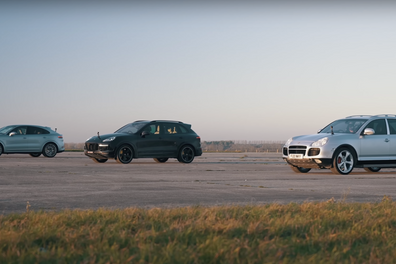 Все поколения Porsche Cayenne Turbo свели в гонке по прямой