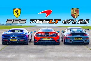 Новую Ferrari 296 GTB сравнили в дрэге с McLaren 765LT и Porsche 911 GT2 RS