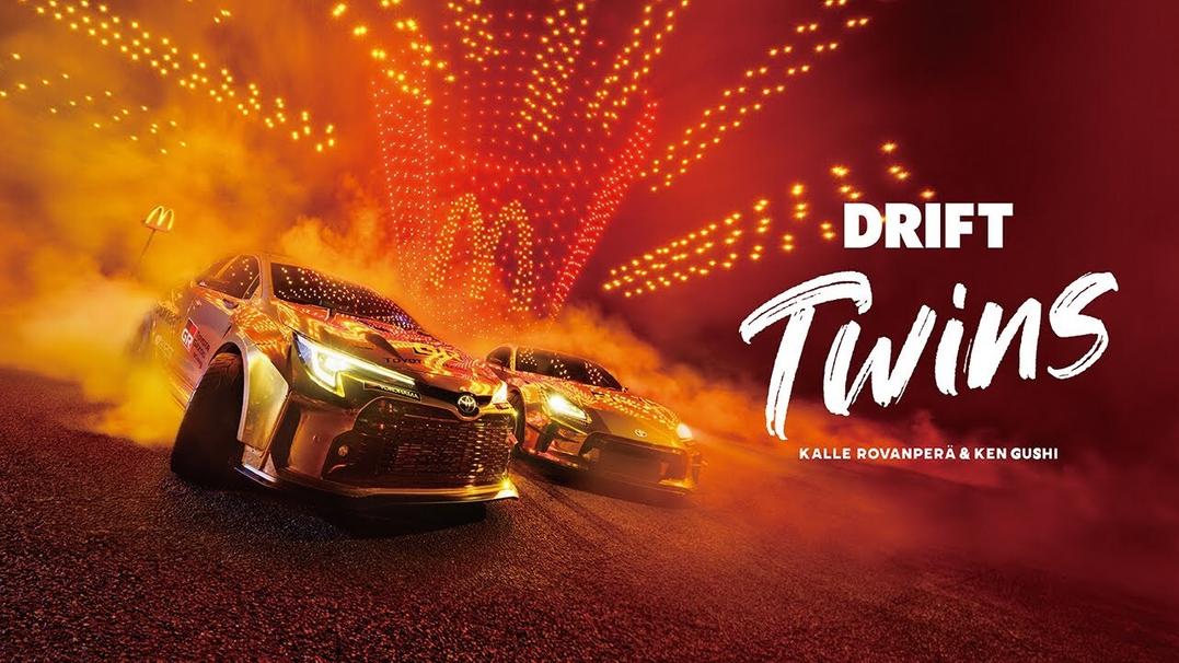 Посмотрите на групповой дрифт двух спорткаров Toyota и нескольких cотен беспилотников