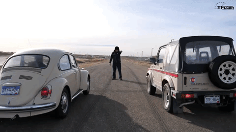 Очень медленный дрэг: Suzuki из 80-х против классического VW Beetle