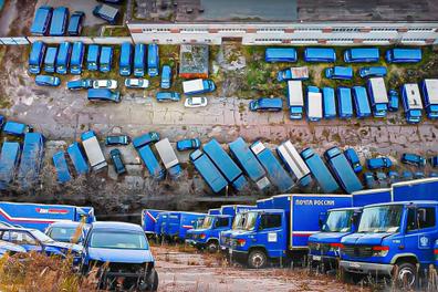 Видео: как под открытым небом умирают десятки грузовичков «Почты России»