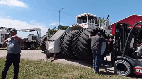 Посмотрите, как меняют колеса на самом большом в мире тракторе