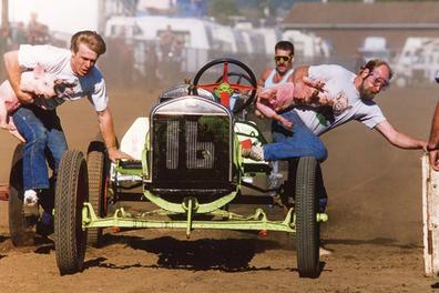 Видео: гонка на старых «Фордах» со свиньями подмышкой