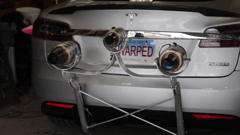 Посмотрите, как разгоняется Tesla Model S с тремя реактивными двигателями