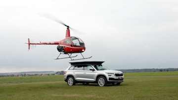 Чтобы превратить кроссовер в вертолетную площадку, специалисты установили на крыше автомобиля 100-килограммовую платформу